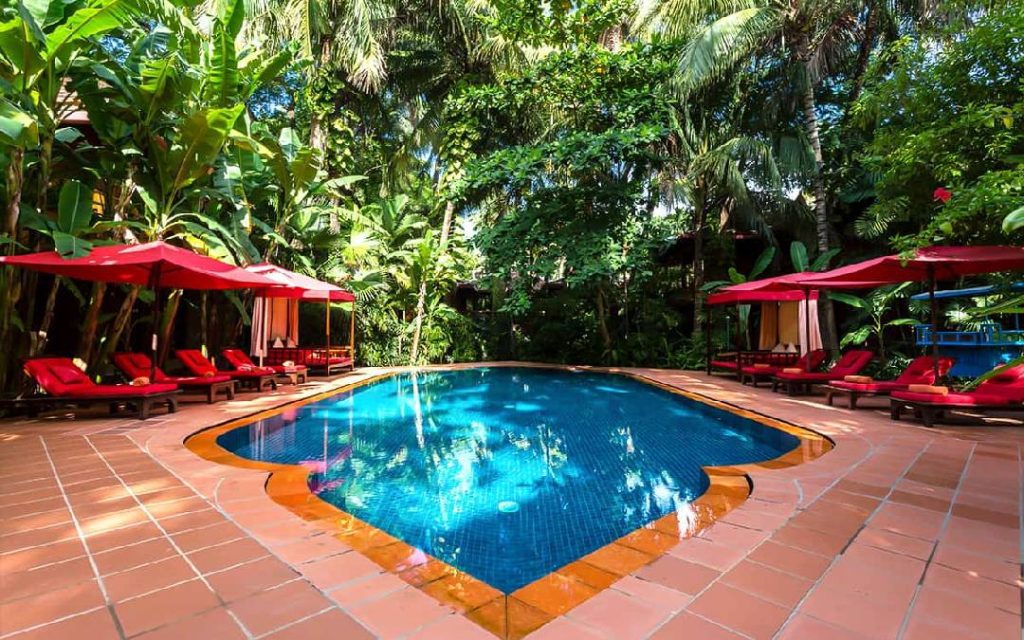 With its lush tropical gardens, The Angkor Village Hotel is a tranquil oasis in the vibrant heart of downtown Siem Reap; the gateway to the UNESCO World Heritage Site. A small family-owned and operated property founded on authenticity and charm, the Hotel’s unique architecture is an homage to traditional Khmer style. Our 43 rooms, swimming pool, restaurant, theatre and wellness options were designed with respect for local culture, and nature.